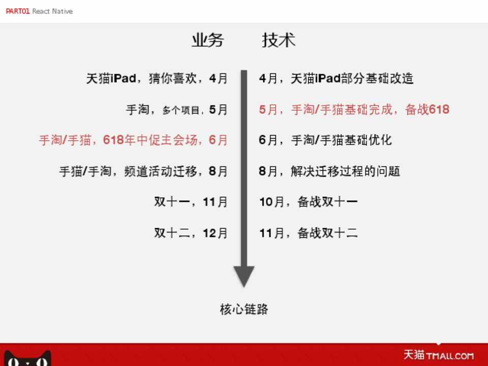 4⽉月,天猫iPad部分基础改造 5⽉月,⼿手淘/⼿手猫基础完成,备战618 6⽉月,⼿手淘/⼿手猫基础优化 8⽉月,解决迁移过程的问题 10⽉月,备战双⼗十⼀一 11⽉月,备战双⼗十⼆二
