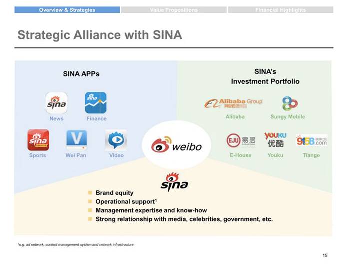 和新浪的战略合作,为微博带来品牌价值、运营帮助、专业的管理、及与媒体、名人和政府的长期合作关系;