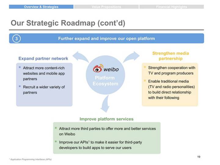 战略三:继续扩大开放平台发展更多合作伙伴;加强媒体合作关系;提高平台服务水平;