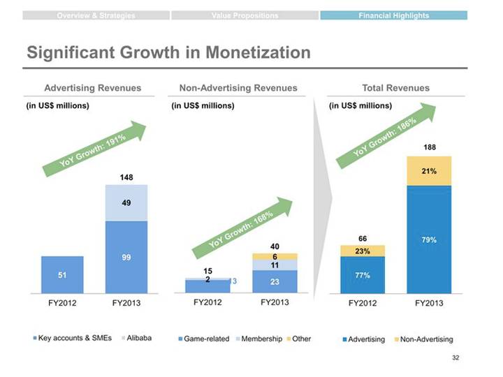 营收增长迅猛:2013年收入1.88亿美元,同比增186%;其中广告营收1.48亿美元,同比增191%;非广告营收4000万美元,同比增168%;
