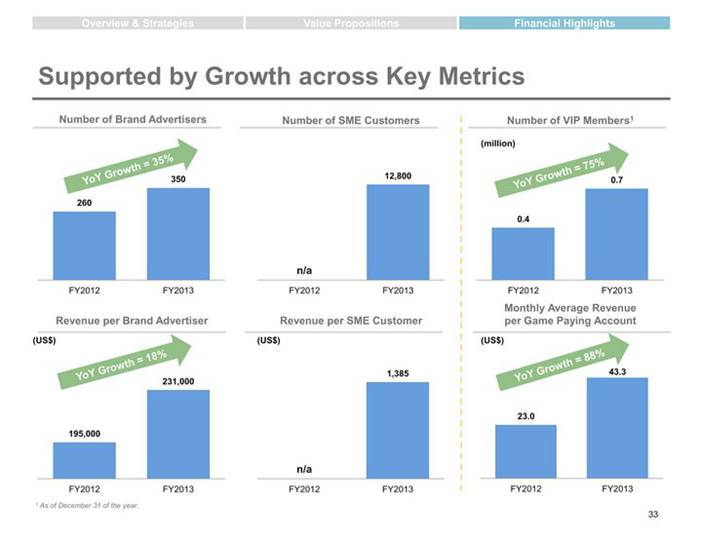 品牌广告主数量同比增35%至350家;平均每广告主贡献营收增长18%至2.31万美元;SME客户数量1.28万;平均每客户付费1385美元;VIP会员数量同比增75%至70万;游戏账户平均每月付费43.3美元;