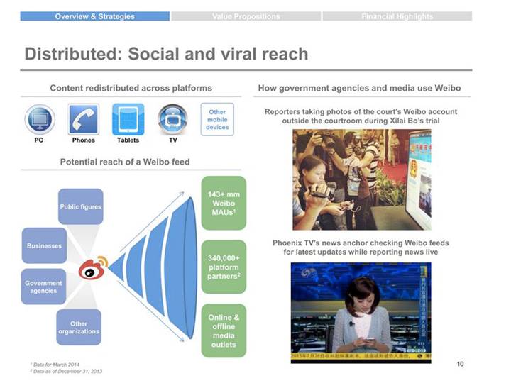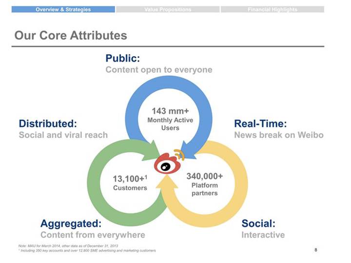 领先的社会化媒体;开放平台价值;媒体价值;广告价值;新浪及阿里的战略合作价值;战略价值;