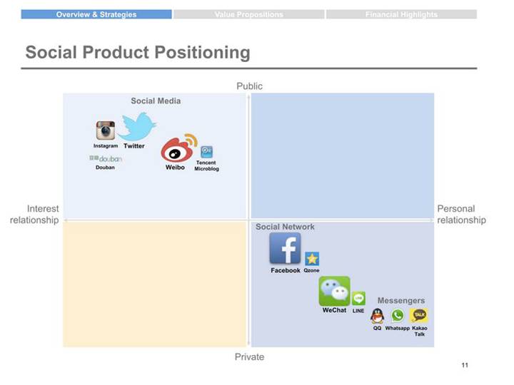 社交产品不同维度进行分类,微博公开化、用户以共同兴趣聚合在一起;