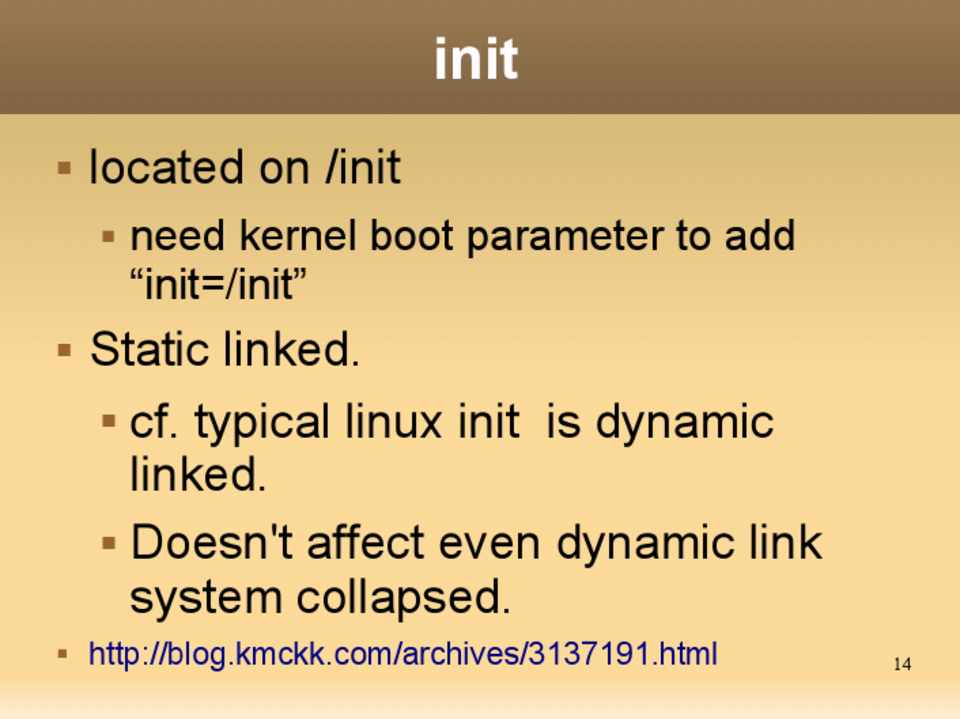 Static linked. cf. typical linux init is dynamic linked. Doesn't affect even dynamic link system collapsed.
