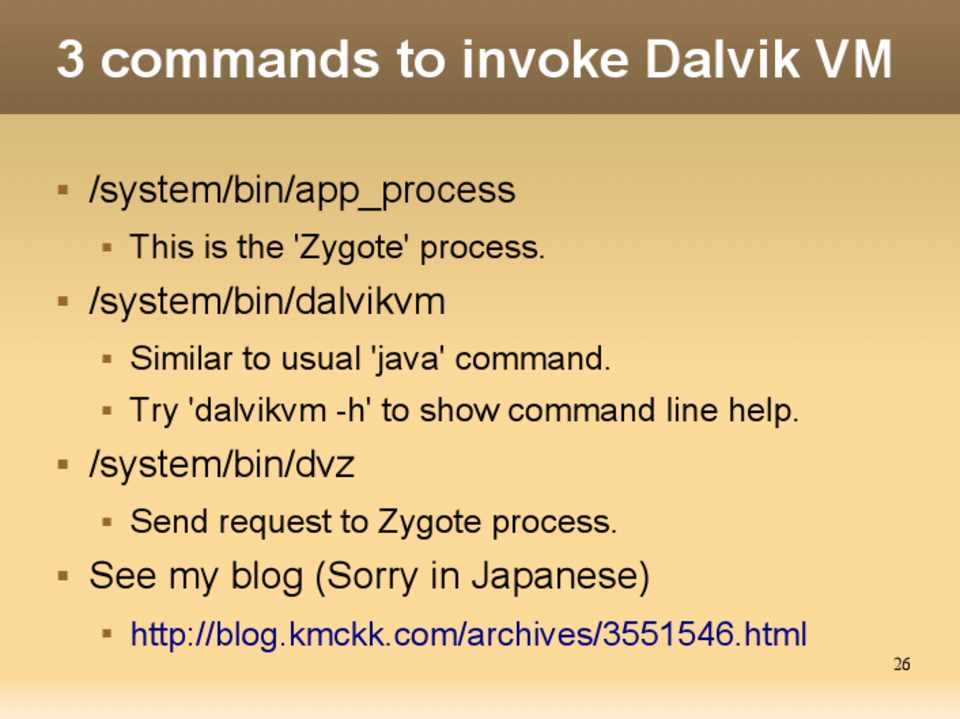 Similar to usual 'java' command. Try 'dalvikvm -h' to show command line help.