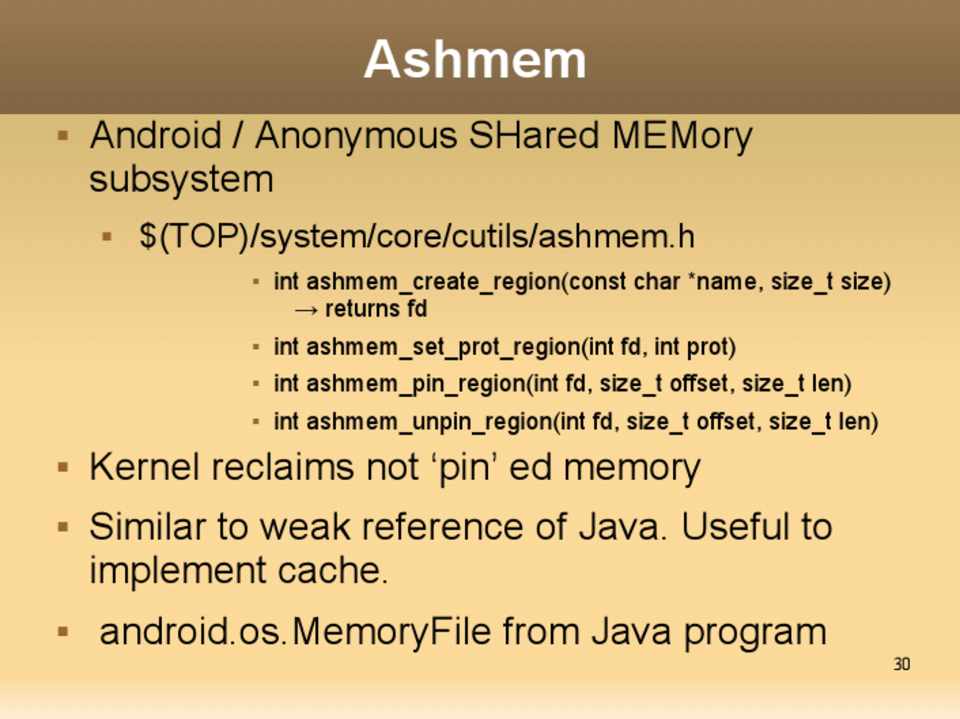 int ashmem_set_prot_region(int fd, int prot) int ashmem_pin_region(int fd, size_t offset, size_t len) int ashmem_unpin_region(int fd, size_t offset, size_t len)
