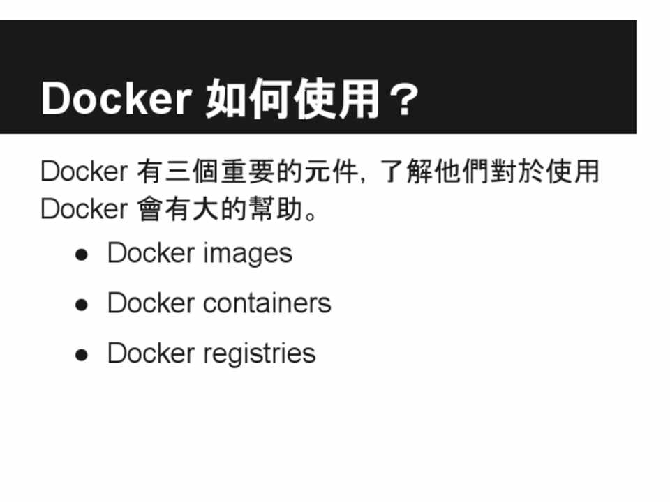 Docker 有三個重要的元件,了解他們對於使用 Docker 會有大的幫助。