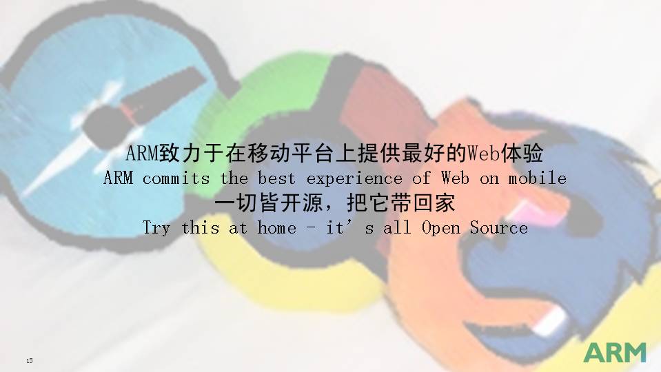 ARM致力于在移动平台上提供最好的Web体验ARM commits the best experience of Web on mobile一切皆开源,把它带回家Try this at home - it’s all Open Source