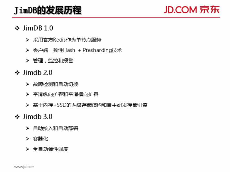 JimDB简介 JimDB的发展历程 JimDB架构概述 管理端平台 监控不报警 迁移不扩容 冷热数据及持丽化 JimDB S-自主研