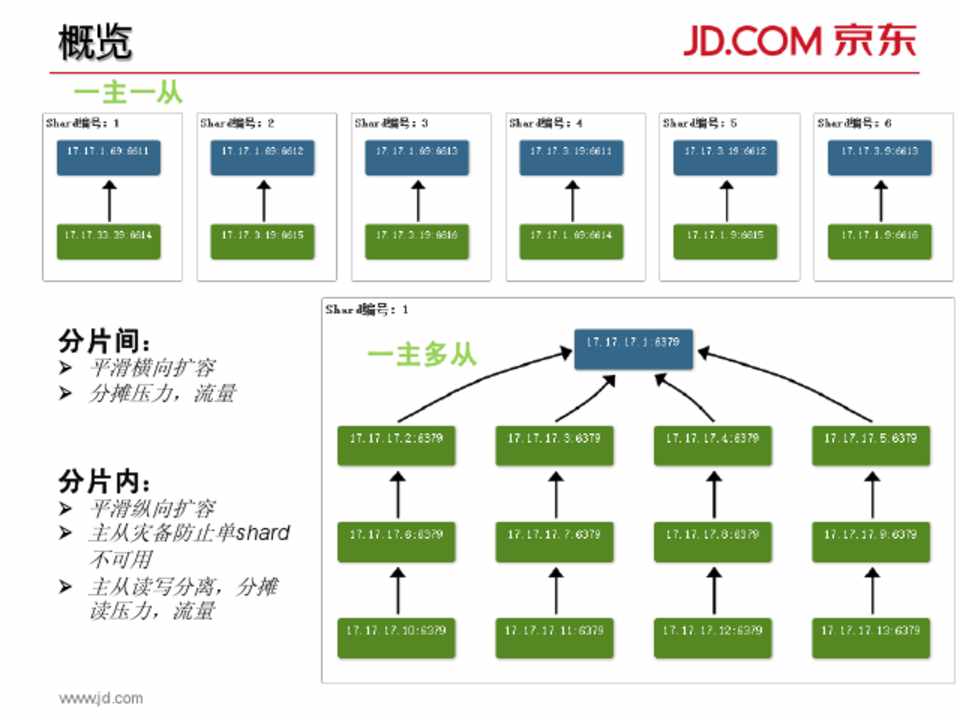 单一分片的内存是丌能无限扩容(纵向)的, 太大了会影响复制的效率 在纵向扩容无法进行的情况下(单一分片内存已经很大,或者流量压力