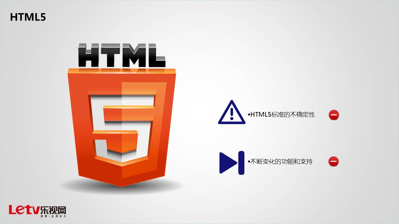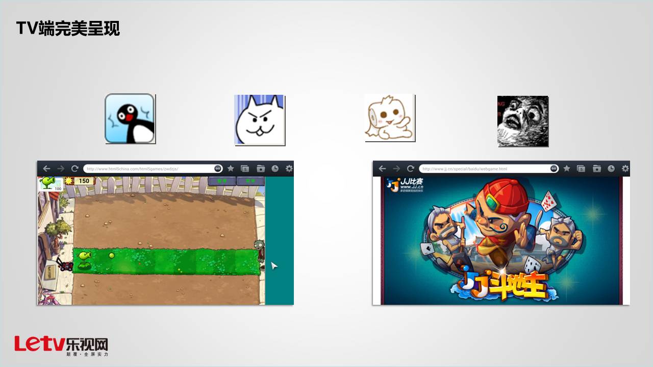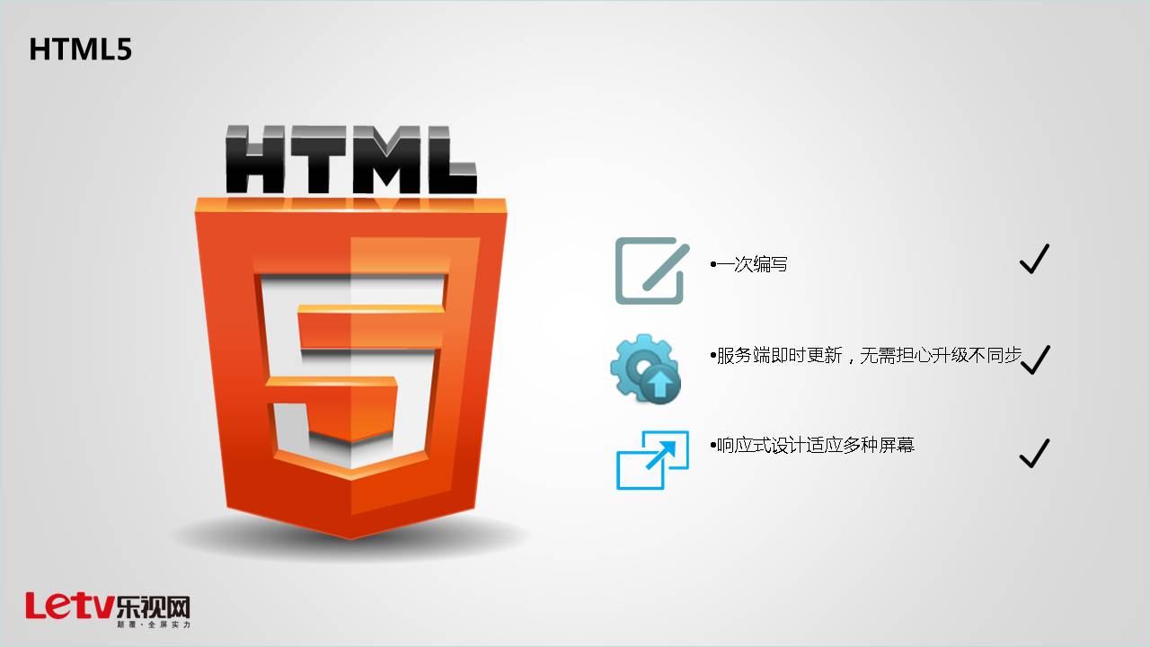 更容易的TV端适配,更低的研发成本,更广泛的用户群体, 更轻松的推广运营,更多的操作方式,HTML5必将助力开启大屏精彩。
