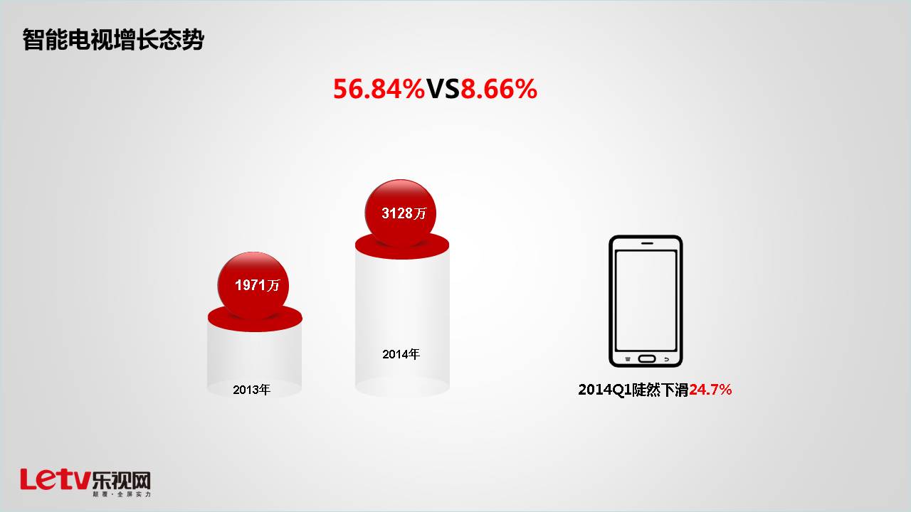 2013年彩电销量近5成来自智能电视,年增长率达56.84%,远远高于彩电全行业8.66%的年增长率。跑赢大盘