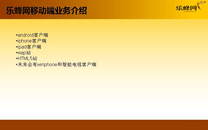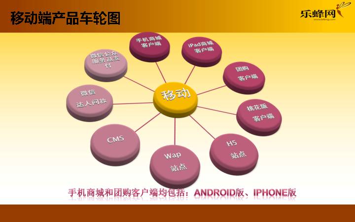 乐蜂移动目前主要构建在iPhone和Android两大平台下,同时具备了H5和wap站点,以满足用户在手机浏览器上的购买需求。