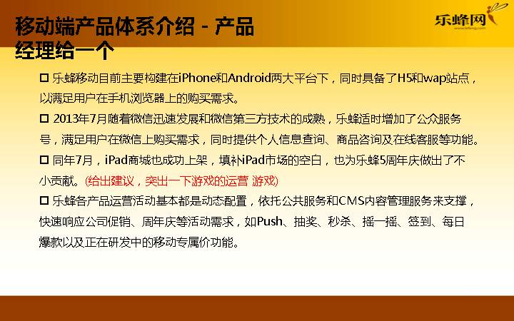 同年7月,iPad商城也成功上架,填补iPad市场的空白,也为乐蜂5周年庆做出了不小贡献。(给出建议,突出一下游戏的运营 游戏)