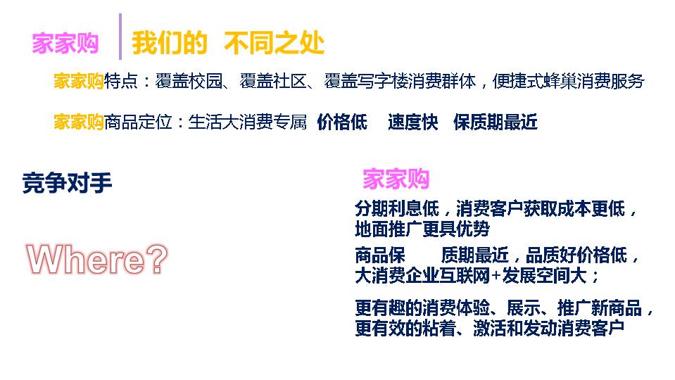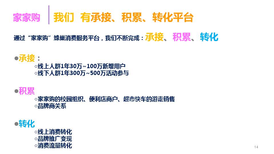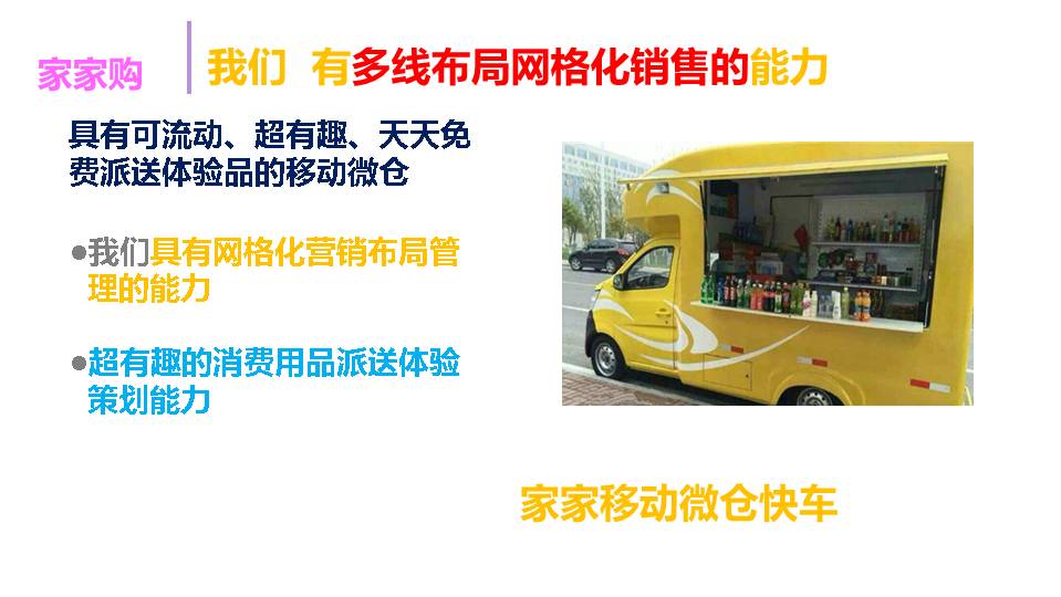 家家购特点:覆盖校园、覆盖社区、覆盖写字楼消费群体,便捷式蜂巢消费服务