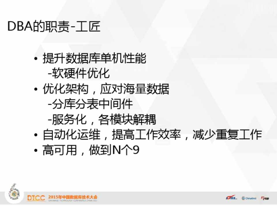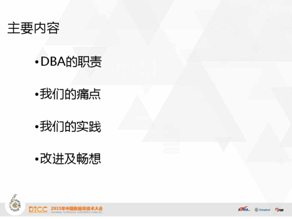 •DBA的职责 •我们的痛点 •我们的实践 •改进及畅想