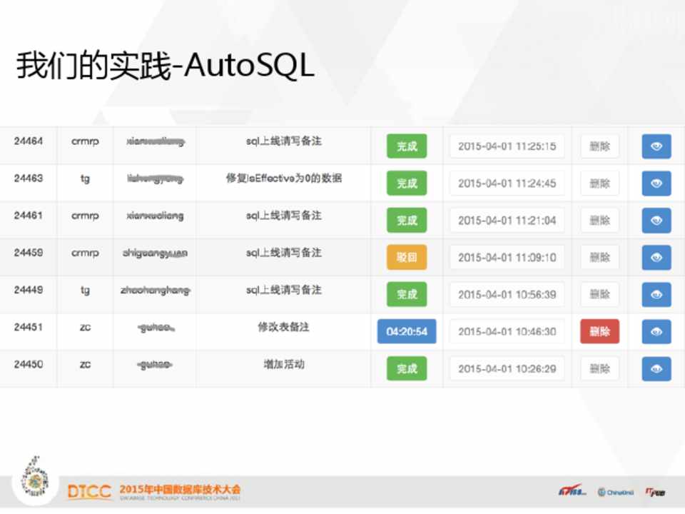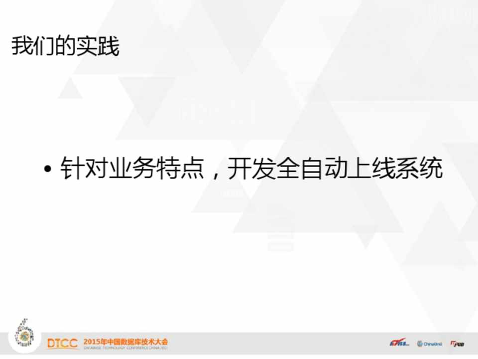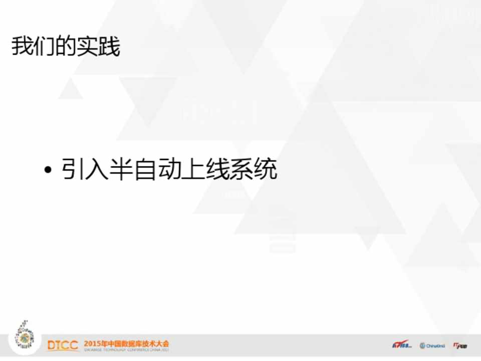 •缺点 -过于重量级 -相比较严格上线,任务描述过于模糊 -DBA 要改写不符合规范的上线