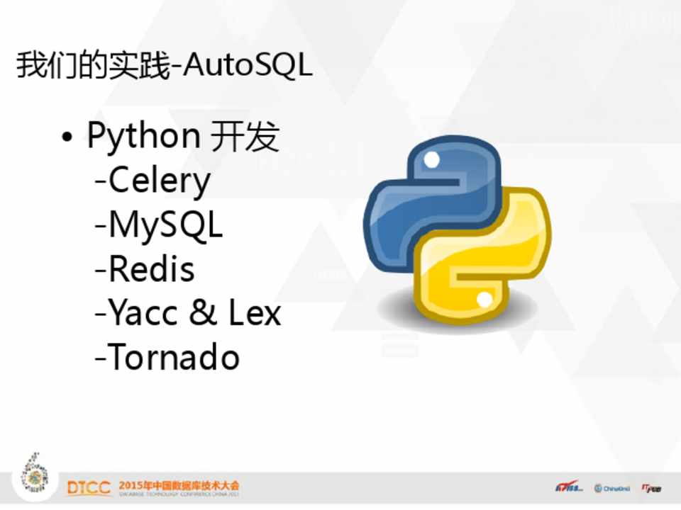 • Python 开发 -Celery -MySQL -Redis -Yacc & Lex -Tornado
