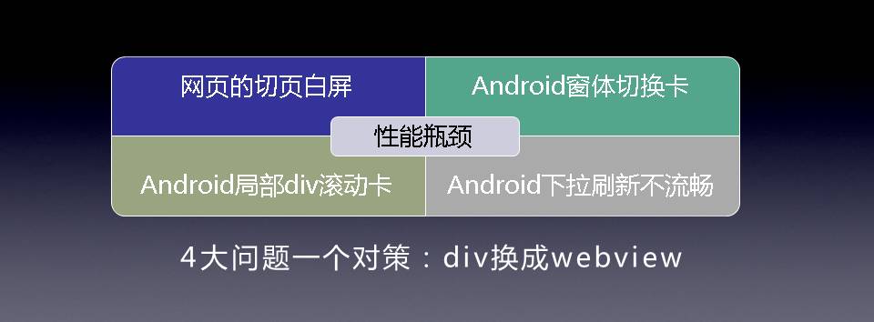 有个广告说4大问题一个对策,这个对策就是div换成webview。