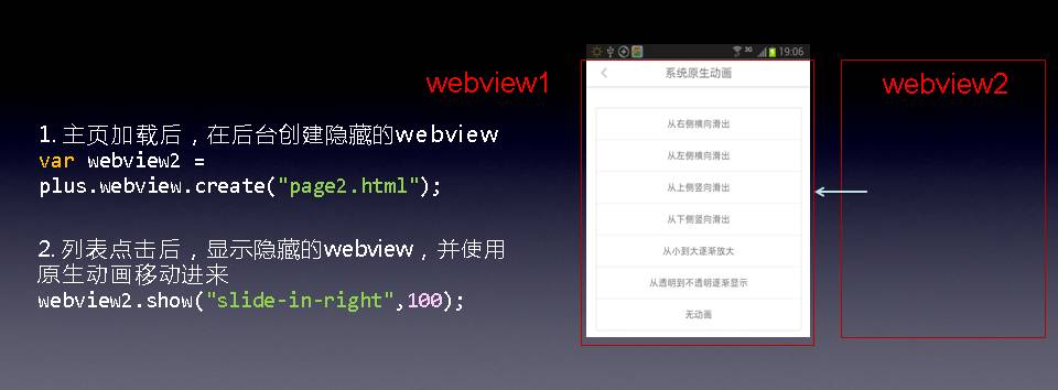 2. 列表点击后,显示隐藏的webview,并使用原生动画移动进来