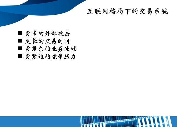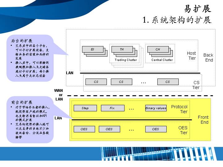 交易层中的各个平台,可以平行扩展设备,支持业务的容量和品种的发展