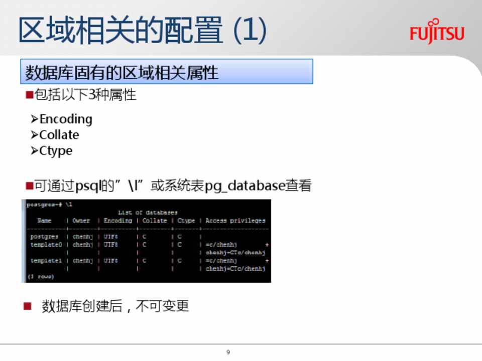 根据区域设置的pg_database属性: encoding datcollate datctype