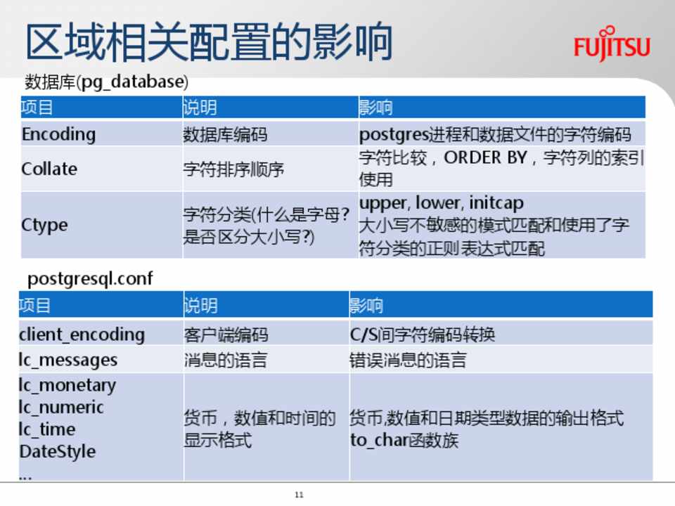 影响 postgres进程和数据文件的字符编码