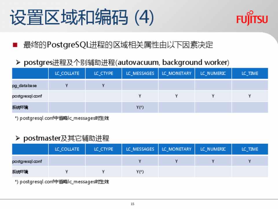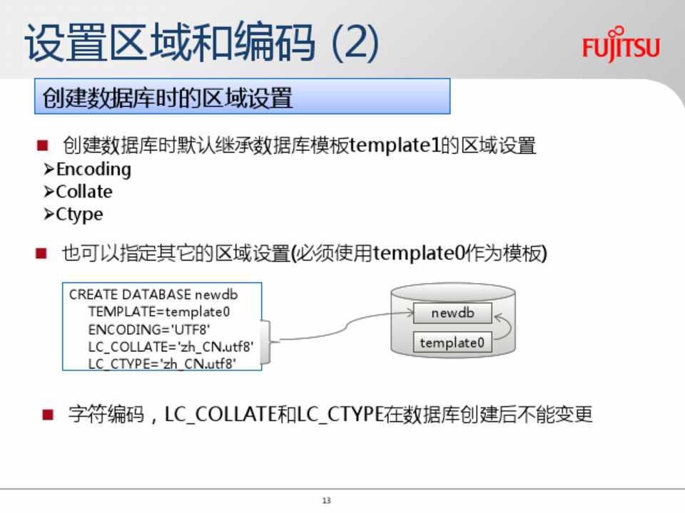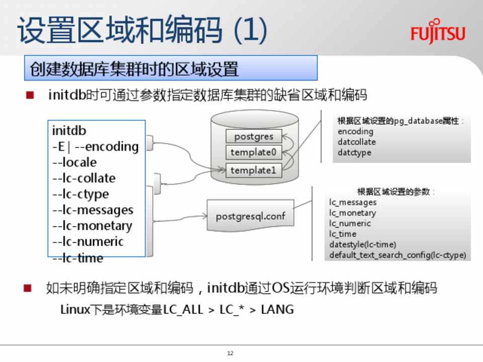 如未明确指定区域和编码,initdb通过OS运行环境判断区域和编码