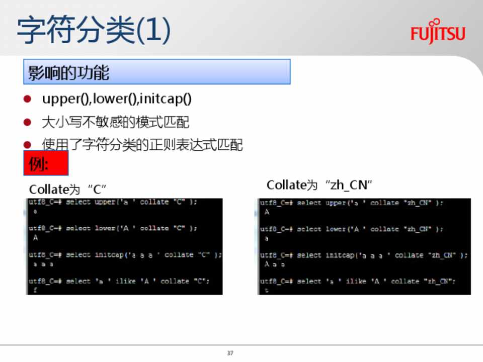 upper, lower, initcap 大小写不敏感的模式匹配和使用了字 符分类的正则表达式匹配