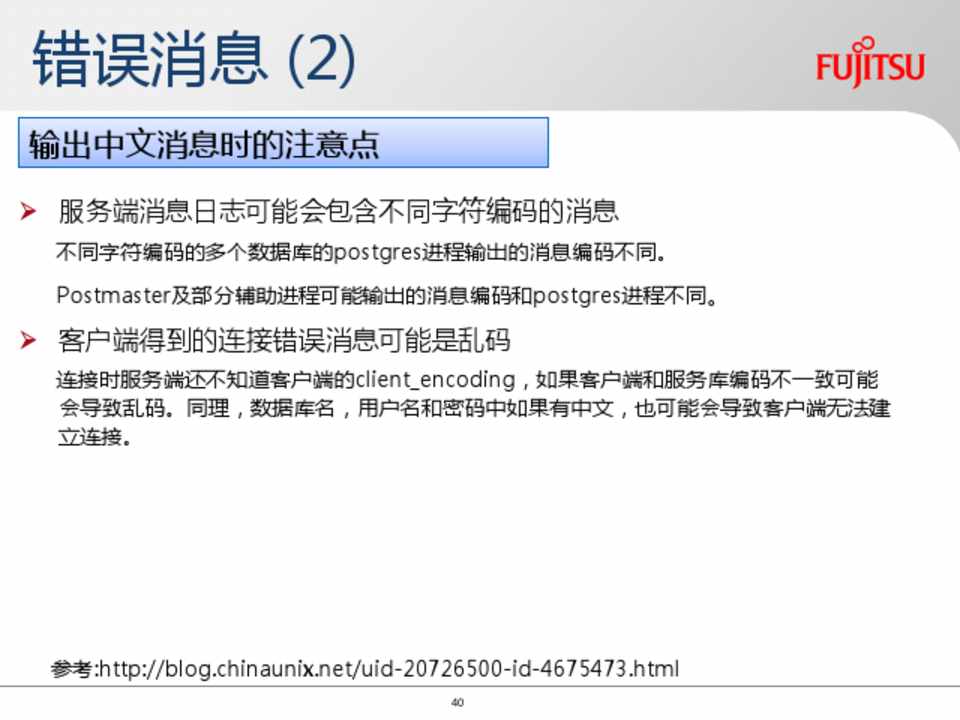 Postmaster及部分辅助进程可能输出的消息编码和postgres进程不同。 客户端得到的连接错误消息可能是乱码