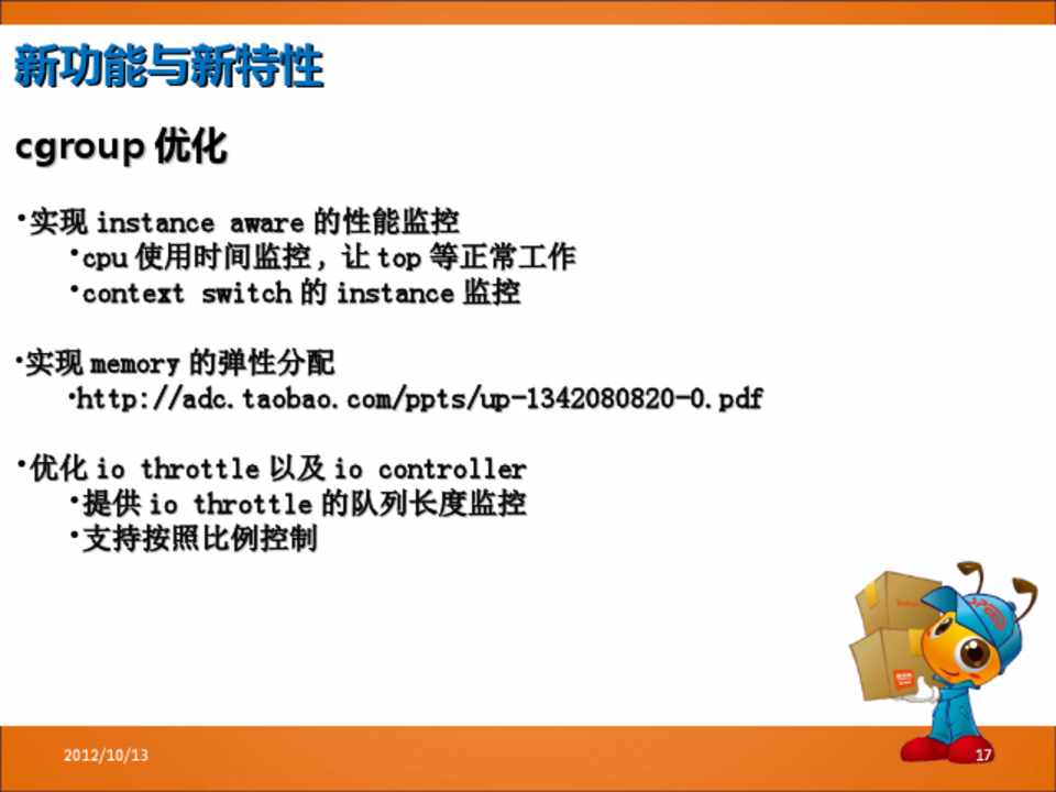 •实现 memory 的弹性分配 •http://adc.taobao.com/ppts/up-1342080820-0.pdf