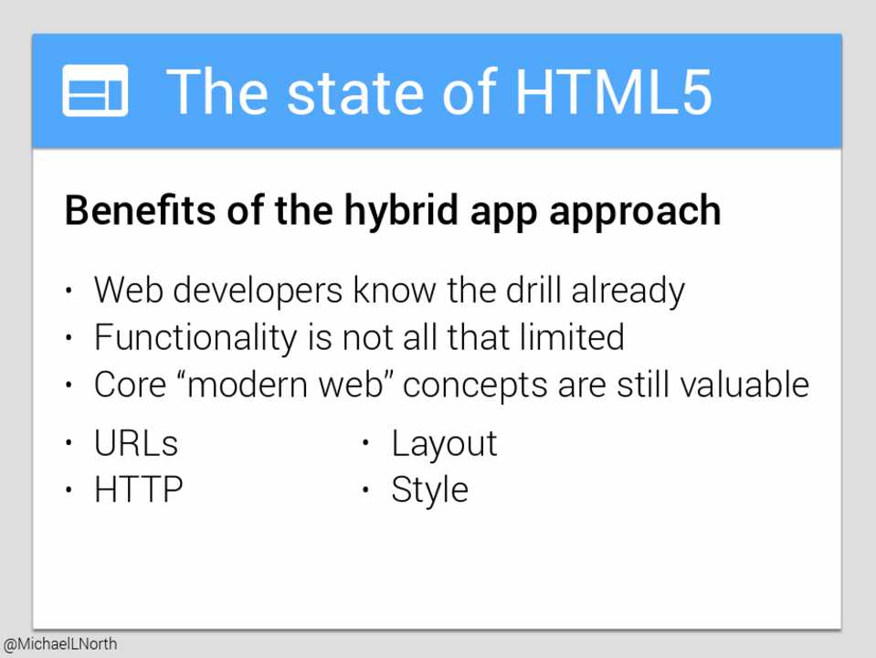 image source: http://www.slideshare.net/hakimrie/phonegapcordova-vs-native-application @MichaelLNorth