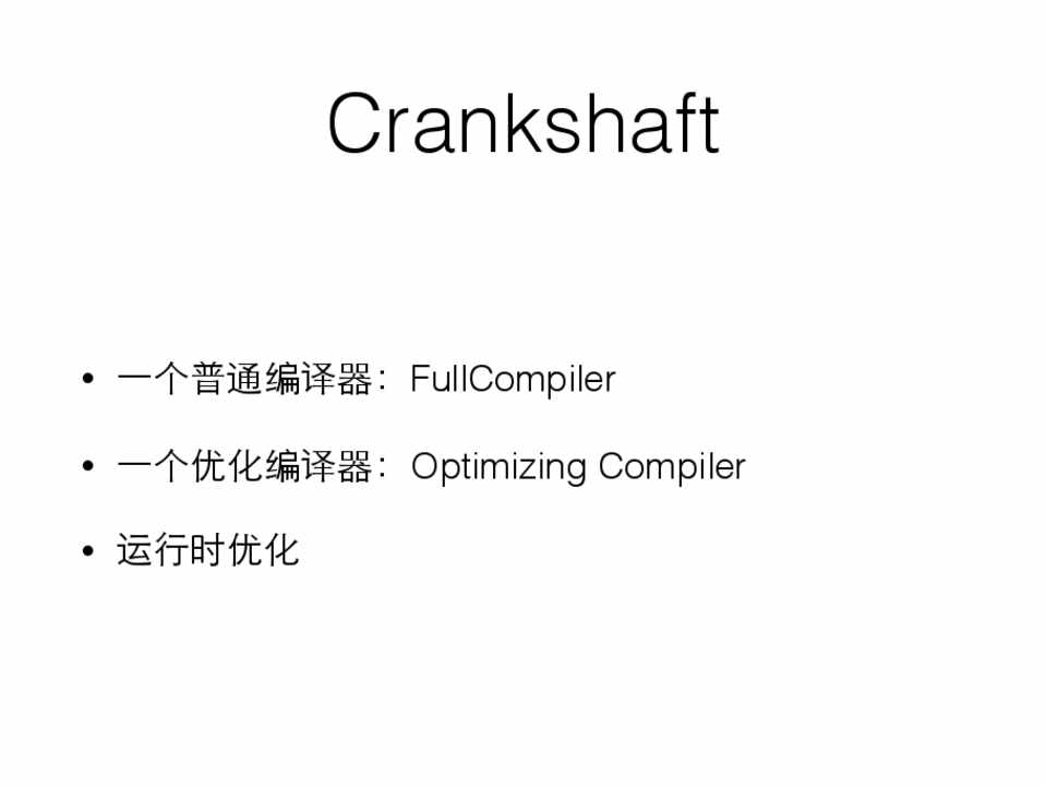 • ⼀一个普通编译器:FullCompiler • ⼀一个优化编译器:Optimizing Compiler • 运⾏行时优化