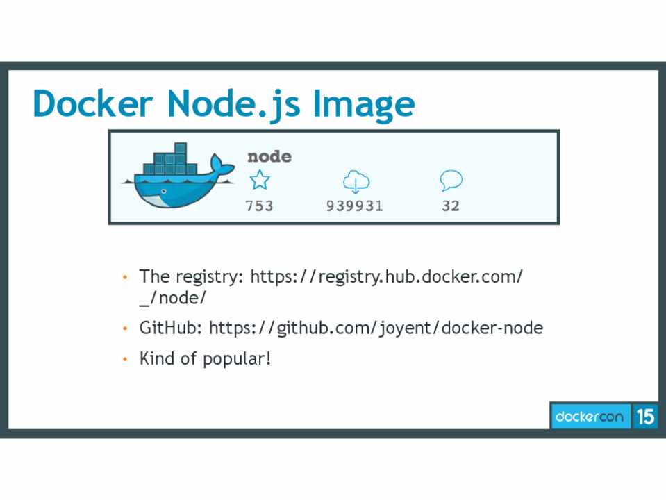 • GitHub: https://github.com/joyent/docker-node • Kind of popular!