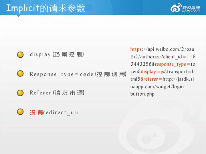 https://api.weibo.com/2/oauth2 /authorize?client_id=1166443256&response_type=token&display=js&transport=html5&referer=http://jssdk.sinaapp.com/widget/login-button.php