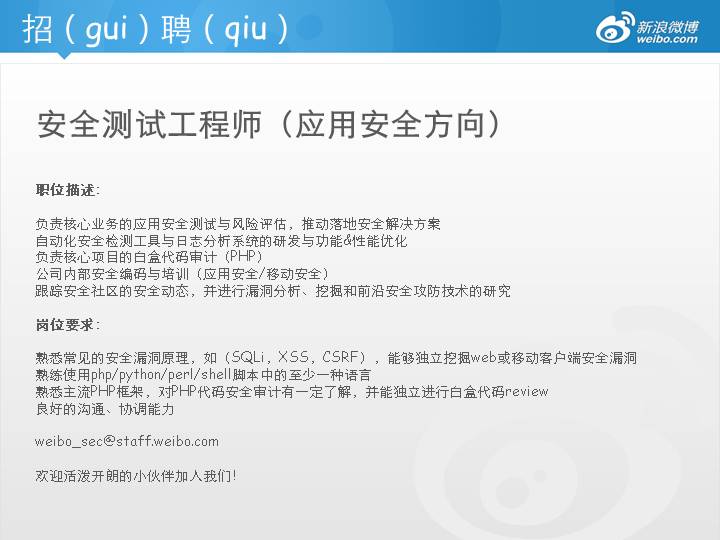 目前负责微博的应用安全&安全自动化平台架构&通行证