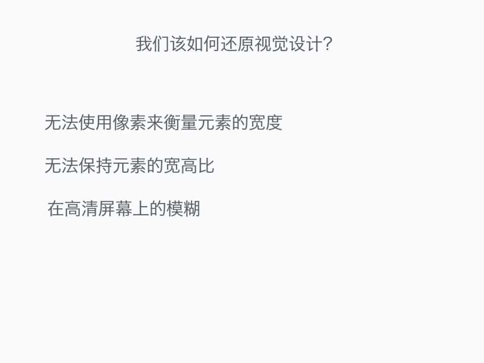 无法使用像素来衡量元素的宽度 无法保持元素的宽高比 在高清屏幕上的模糊