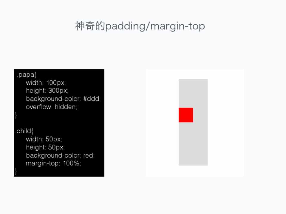 神奇的padding/margin-top ⼦子元素的padding-top百分⽐比基准是⽗父元素的宽度