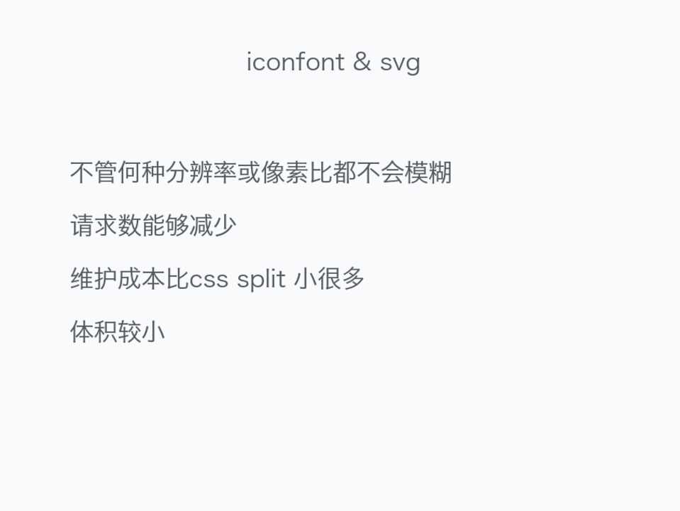 不管何种分辨率或像素比都不会模糊 请求数能够减少 维护成本比css split 小很多 体积较小
