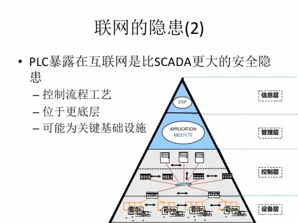 • PLC暴露在互联网是比SCADA更大的安全隐 患