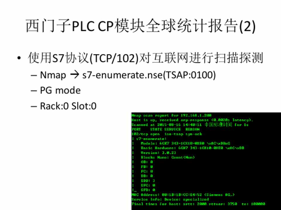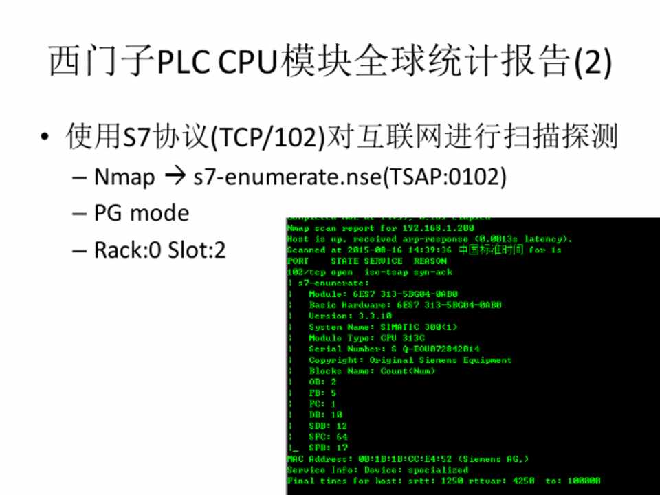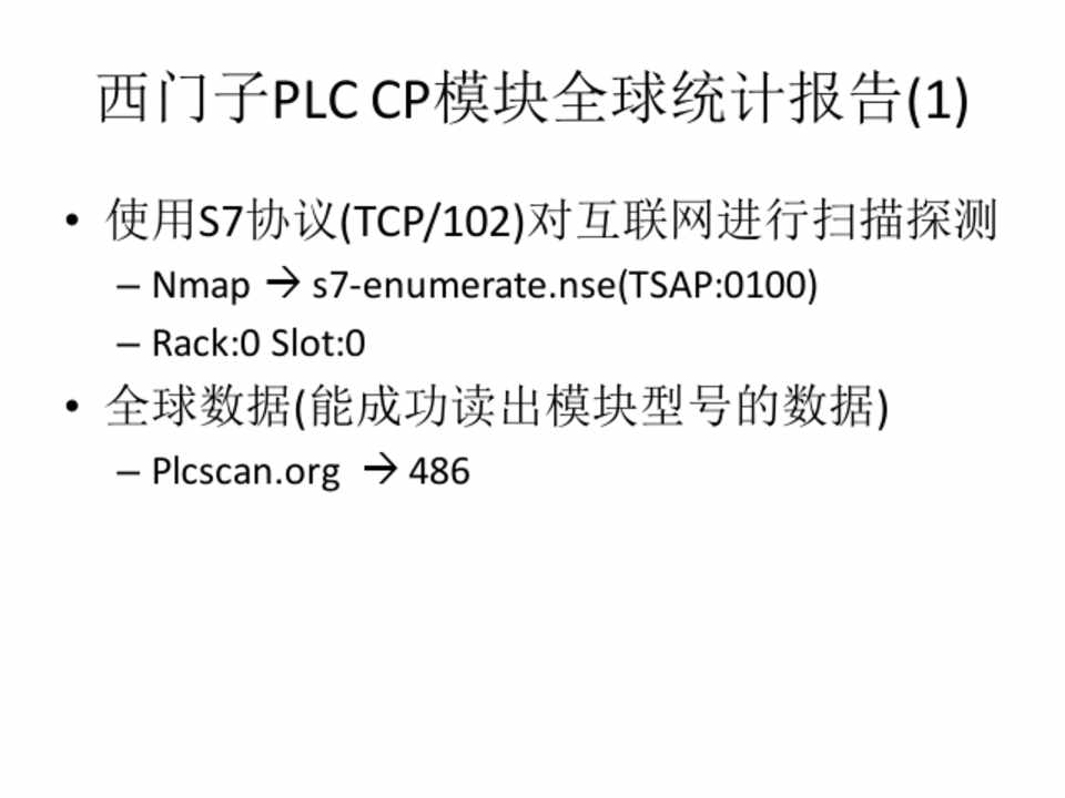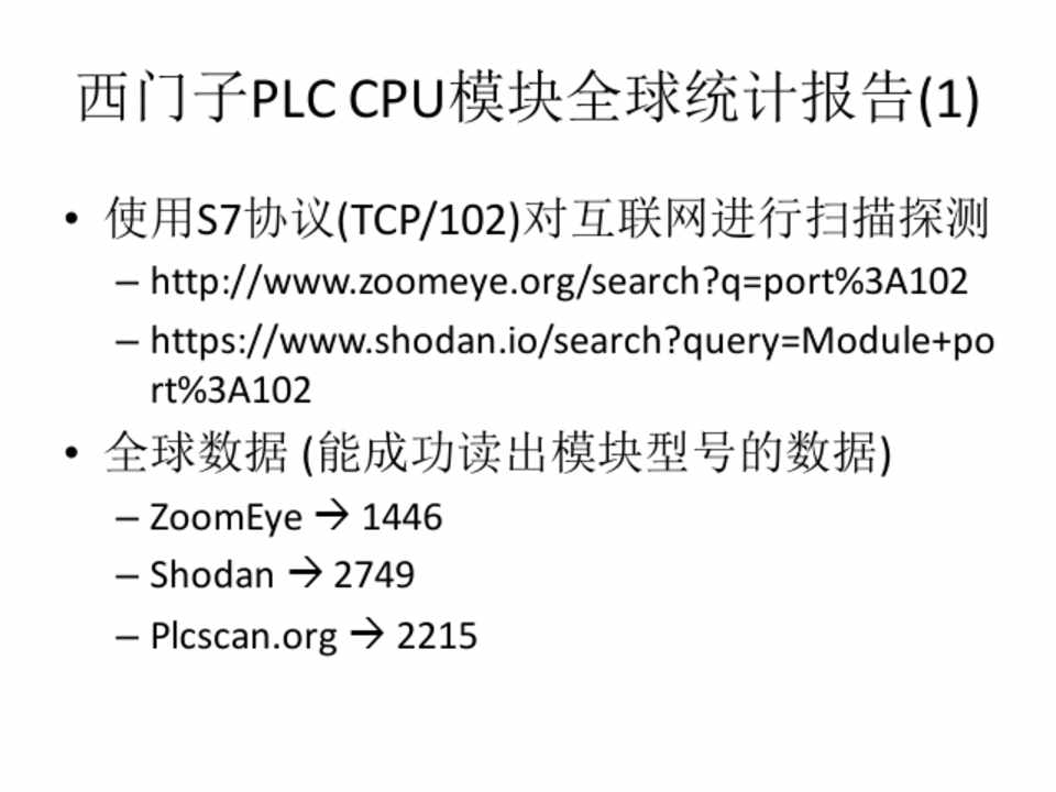 • 使用S7协议(TCP/102)对互联网进行扫描探测