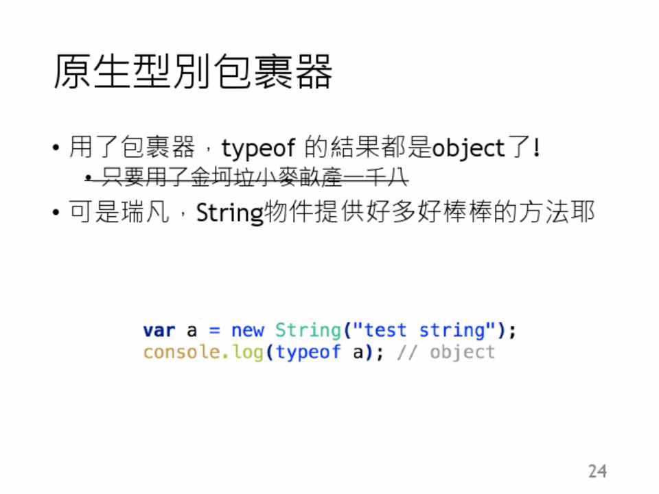 • 用了包裹器,typeof 的結果都是object了!