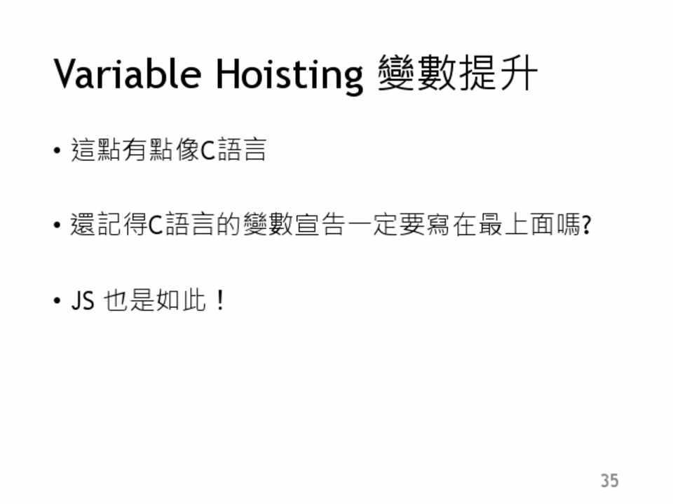 • 當一個變數被宣告,但還未給任何值的時候就是 undefined