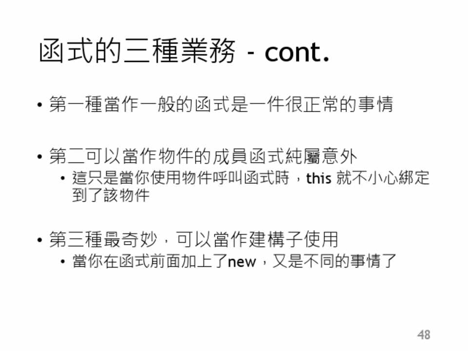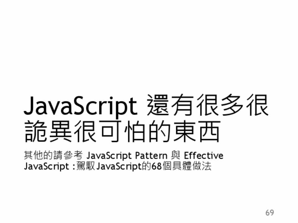 其他的請參考 JavaScript Pattern 與 Effective JavaScript :駕馭JavaScript的68個具體做法