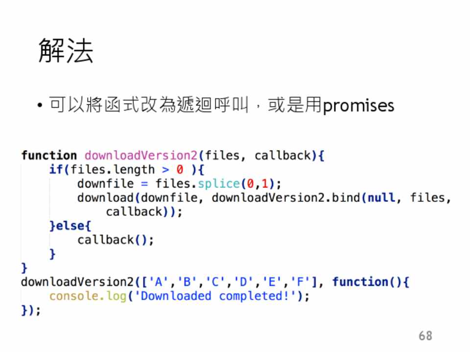 • 可以將函式改為遞迴呼叫,或是用promises
