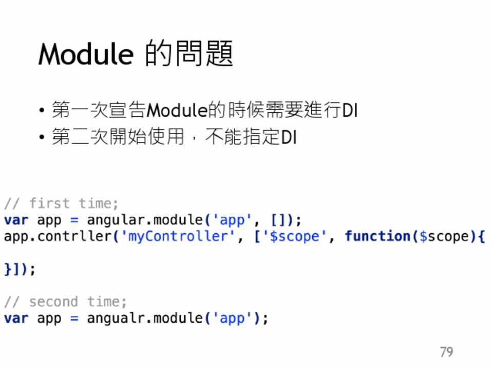 • 第一次宣告Module的時候需要進行DI • 第二次開始使用,不能指定DI