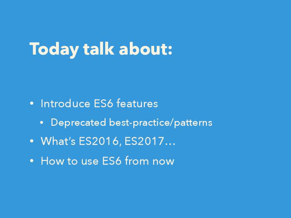 • What’s ES2016, ES2017… • How to use ES6 from now