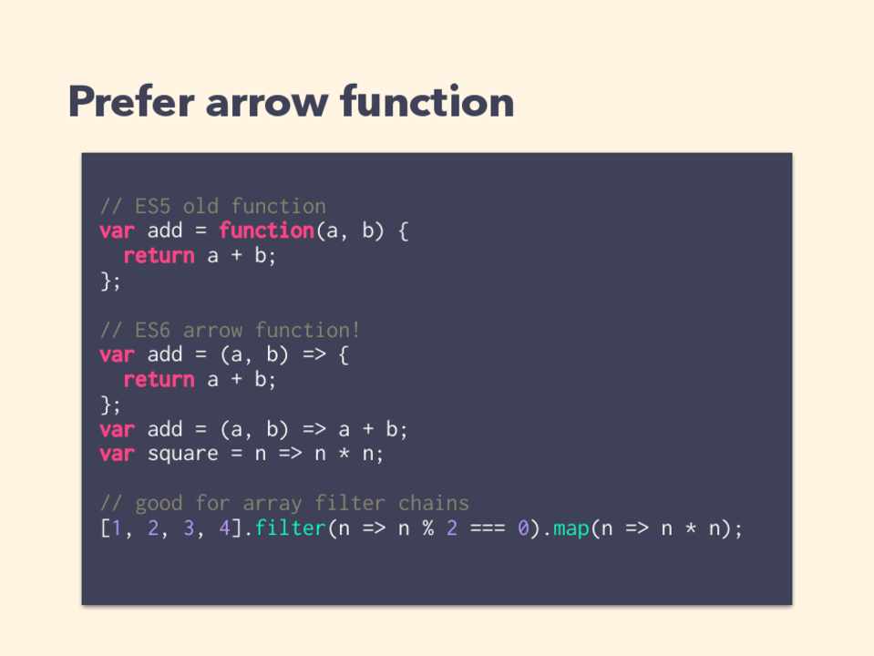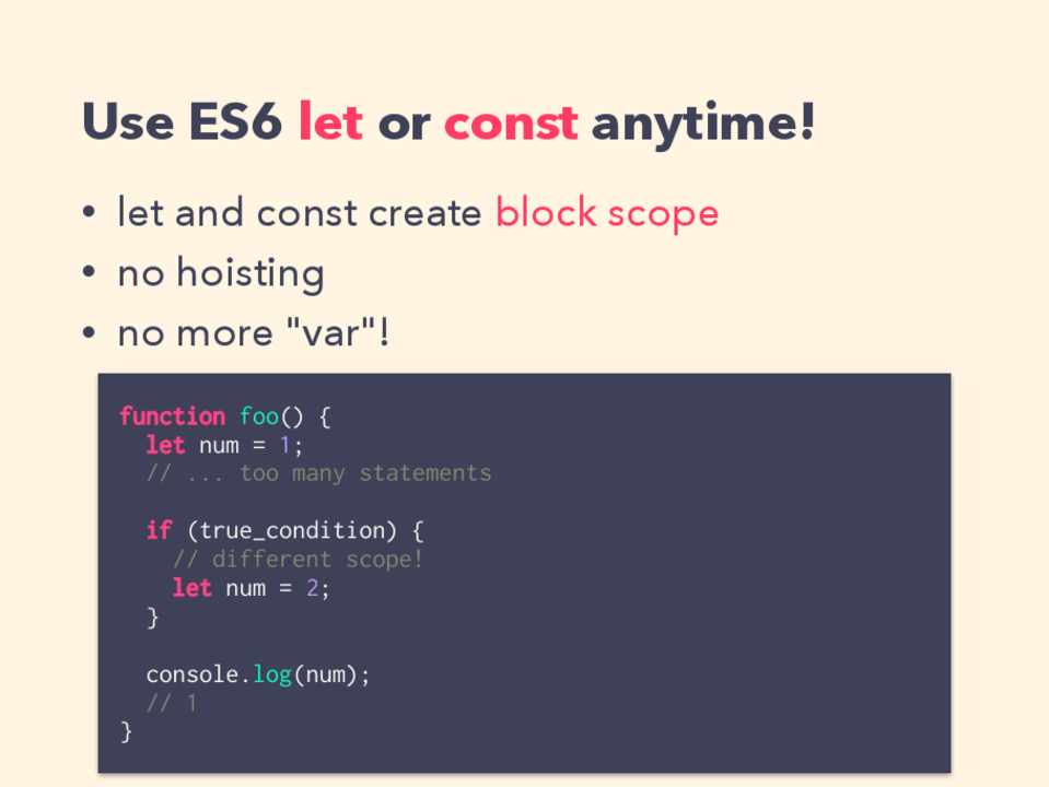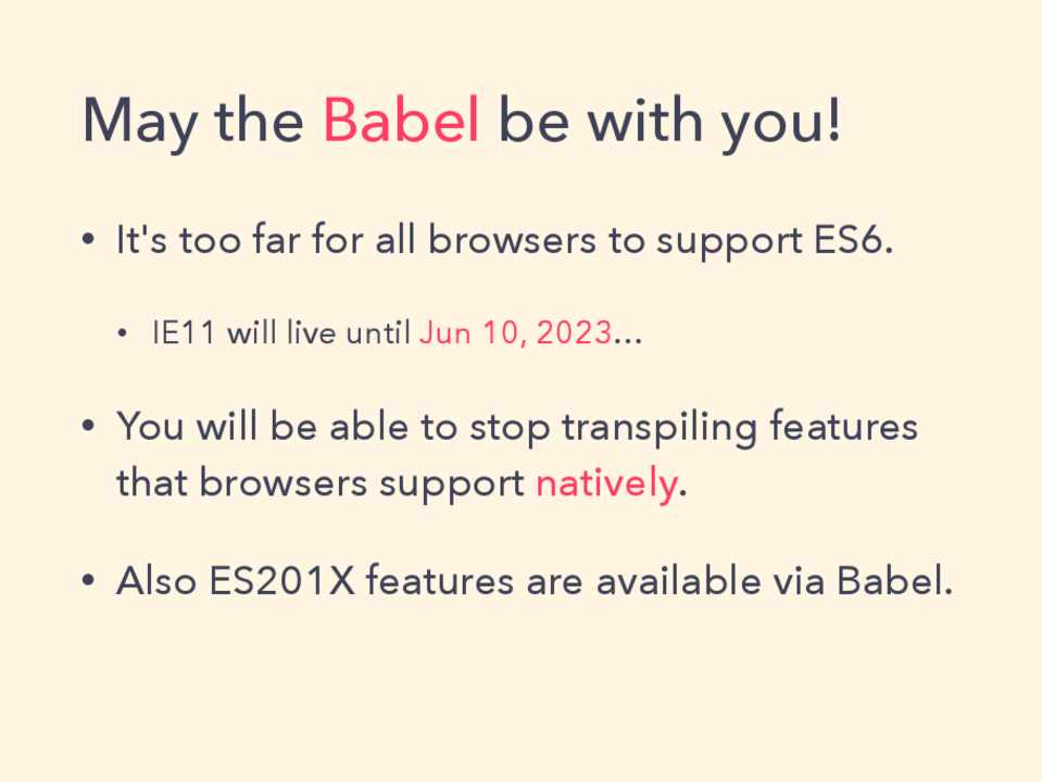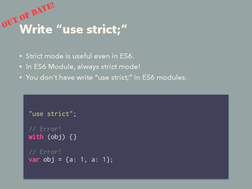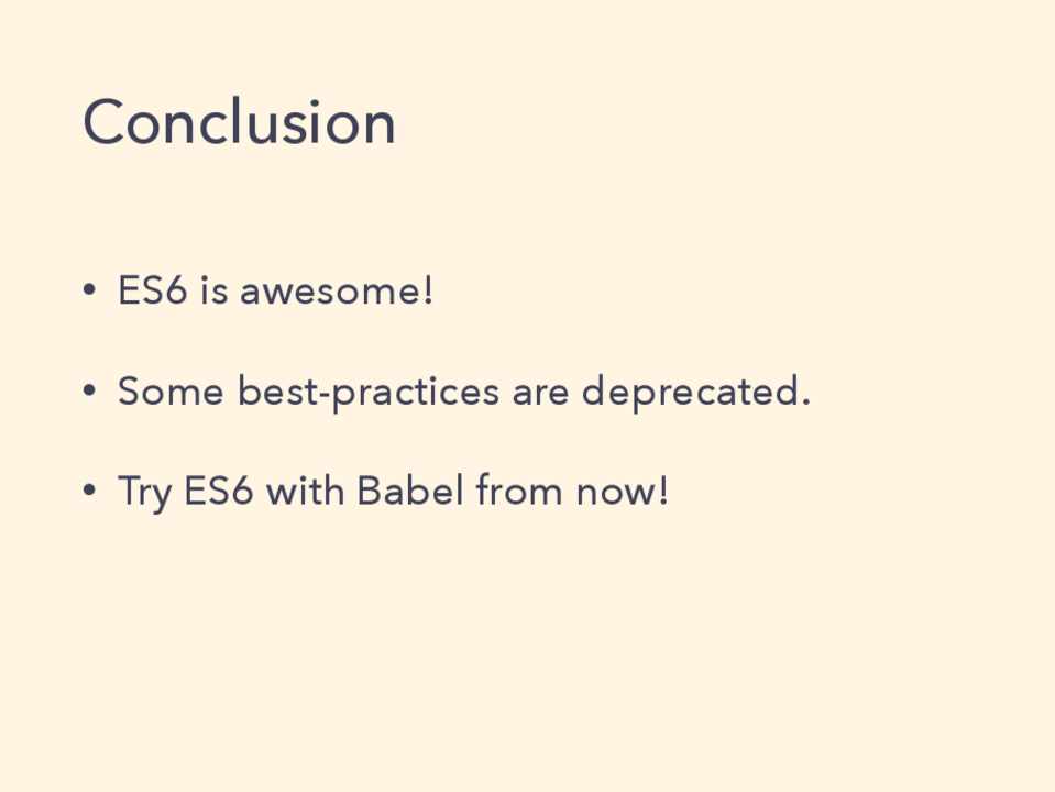• ES6 is awesome! • Some best-practices are deprecated. • Try ES6 with Babel from now!