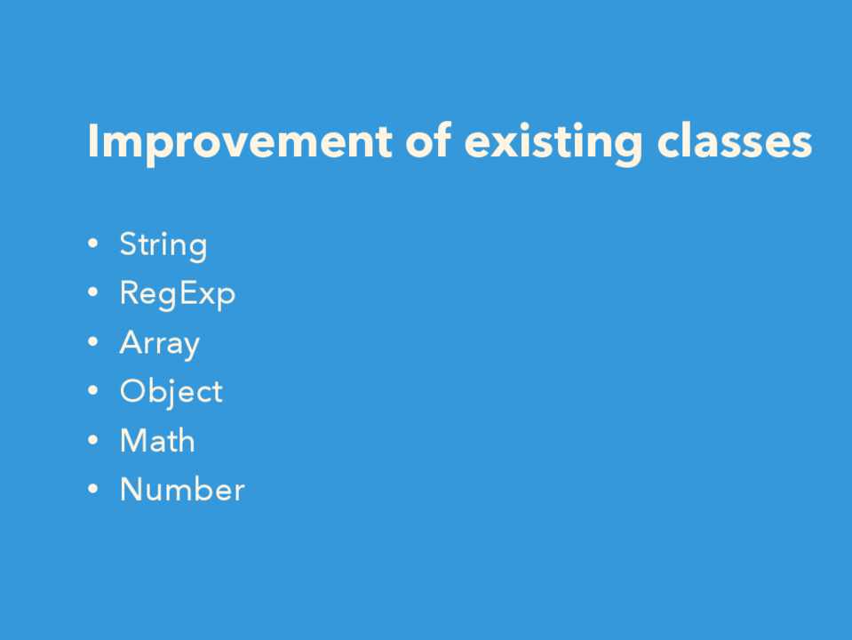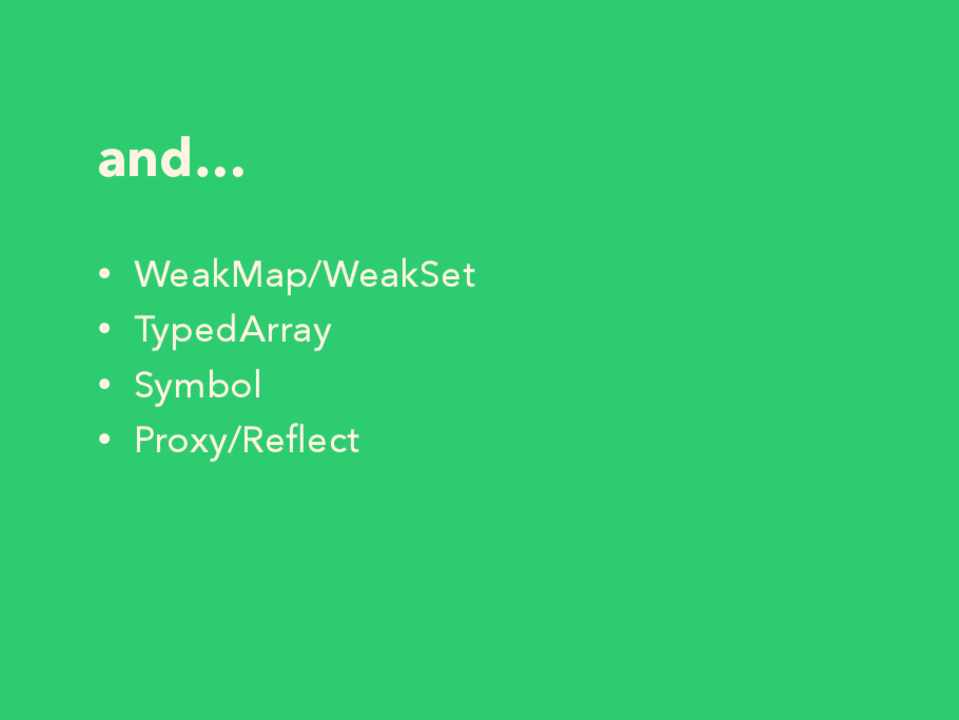• WeakMap/WeakSet • TypedArray • Symbol • Proxy/Reflect