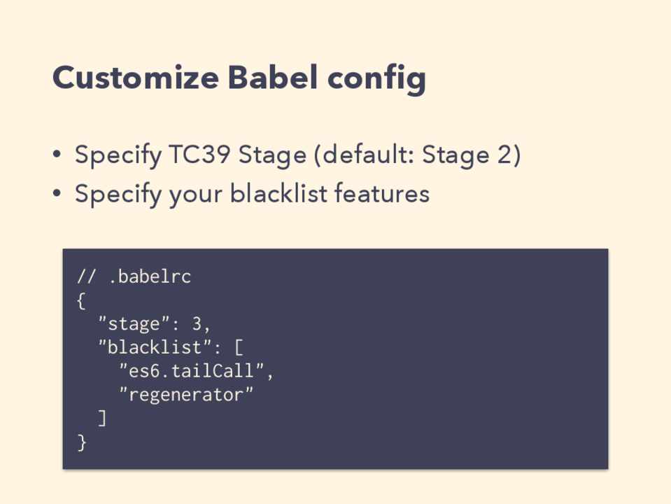 • Specify TC39 Stage (default: Stage 2) • Specify your blacklist features